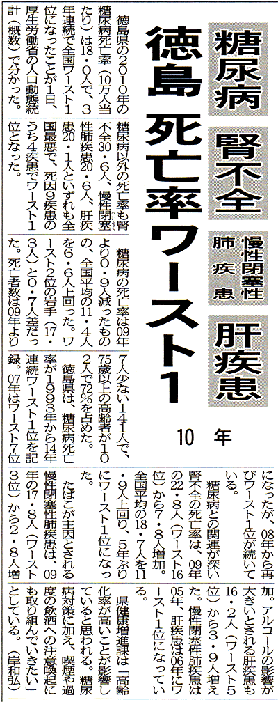 徳島県は、肝臓疾患死亡率ワースト1